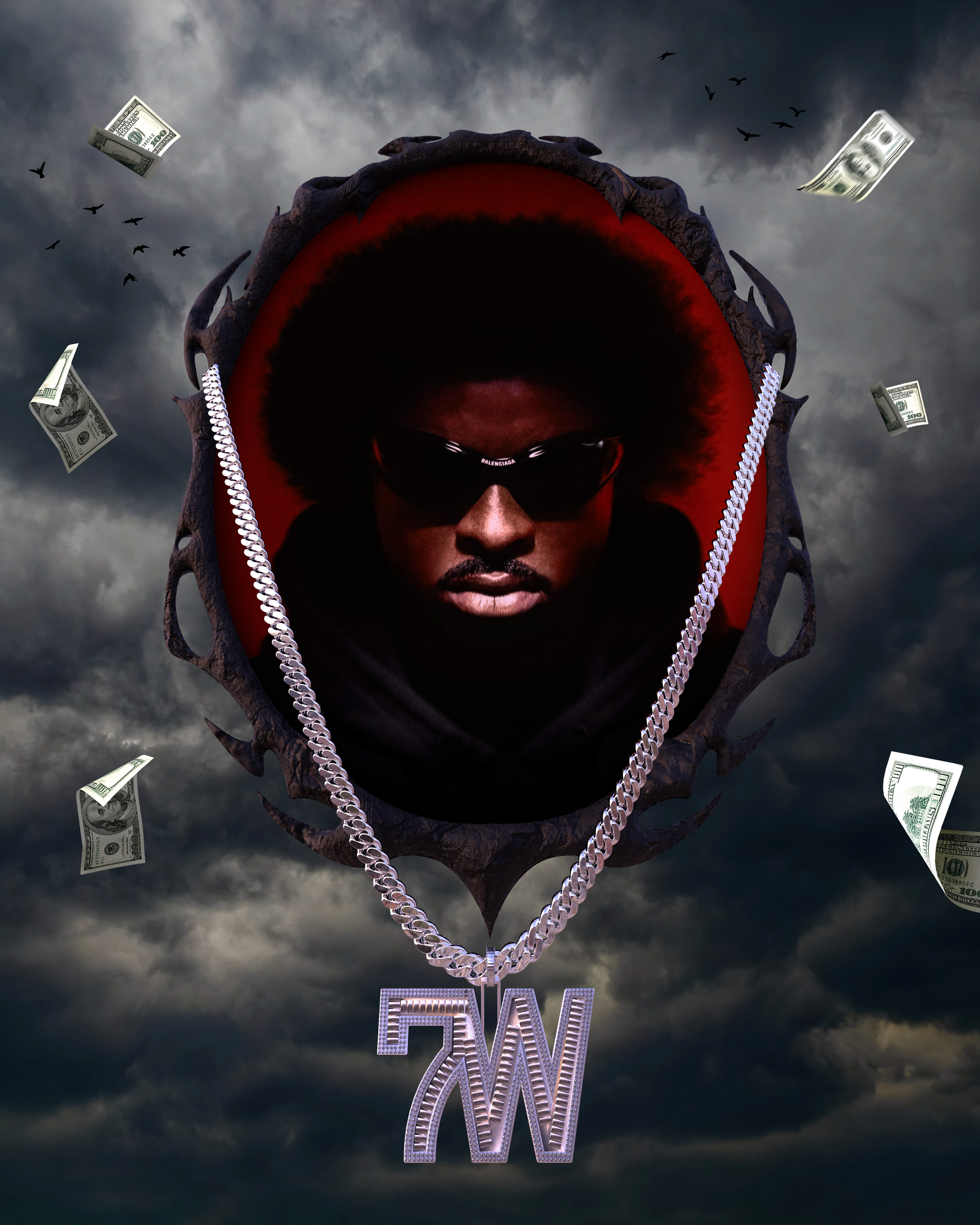 À l'occasion de la sortie de sa mixtape surprise nommée "BIGLAF", j'ai conçu un poster visant à retransmettre visuellement l'atmosphère et l'énergie que certains de ses sons peuvent produire.